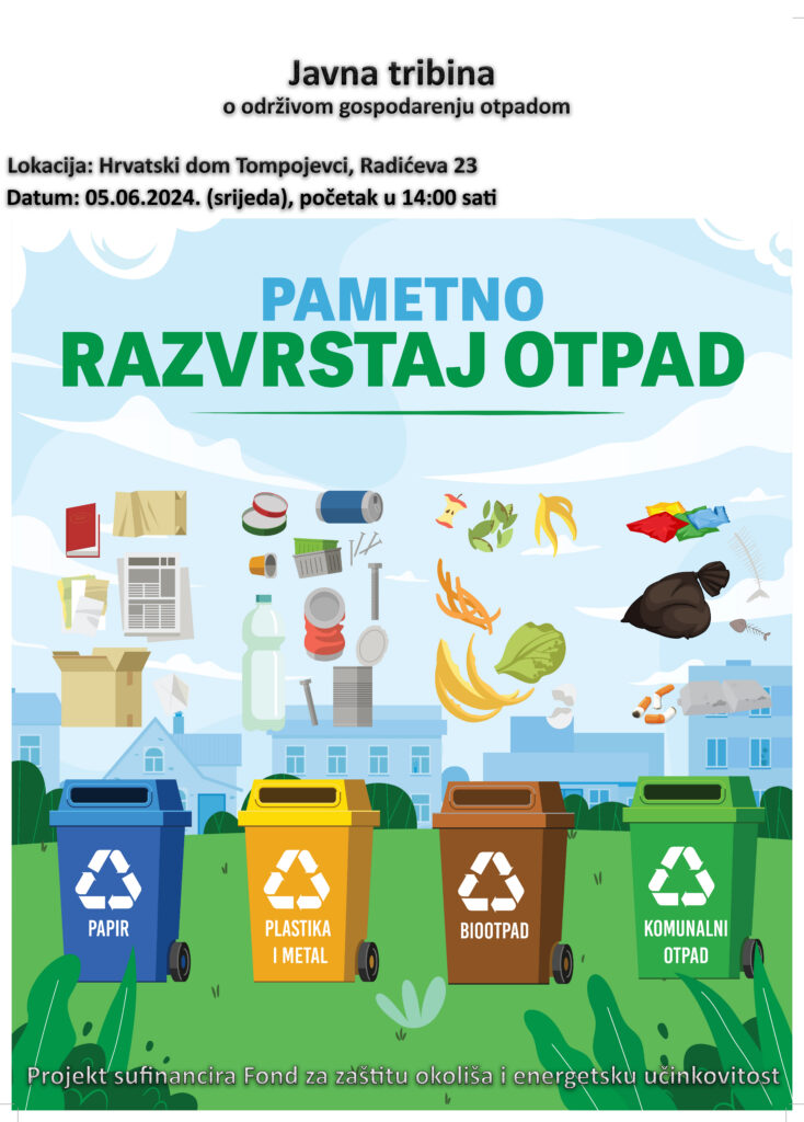 05.06.2024. (srijeda) u 14:00h u Hrvatskom domu u Tompojevcima održat će se javna tribina o gospodarenju otpadom.