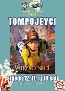 Slavonsko mobilno kino (SMOKI) i Vukovarsko-srijemska županija poklanjaju najmlađima kino projekciju filma “Vatreno srce”. Pozivamo sve u srijedu 12.11.2025. godine u 18:00 sati u Hrvatski
