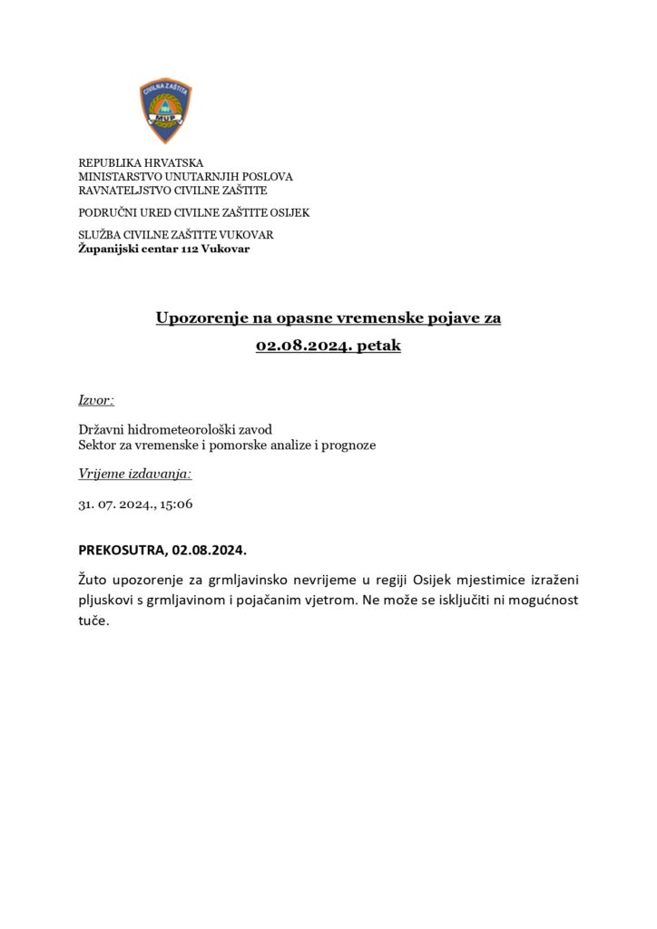 DHMZ-Upozorenje na opasne vremenske pojave-20240731