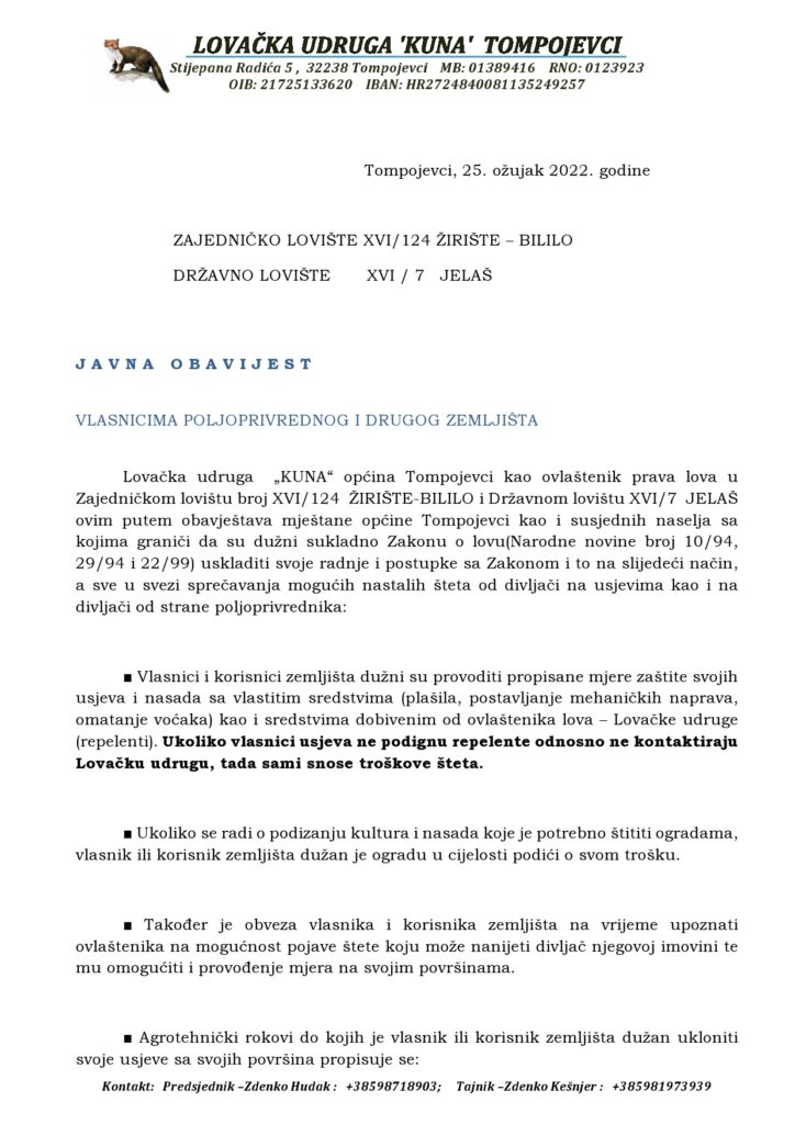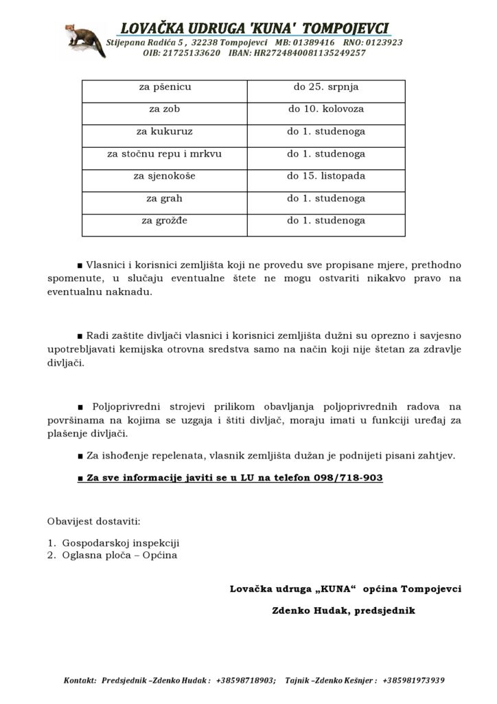 OBAVIJEST O ZAŠTITI USJEVA